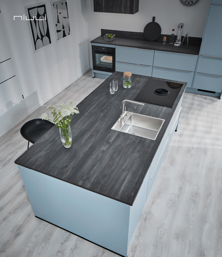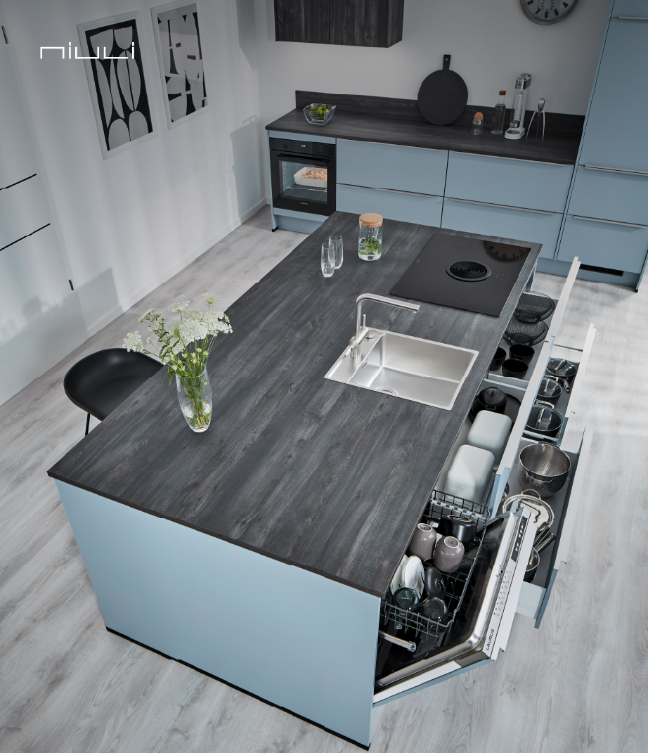 An island kitchen encourages social interaction and plays a central role in family life. Central is definitely the operative word here!