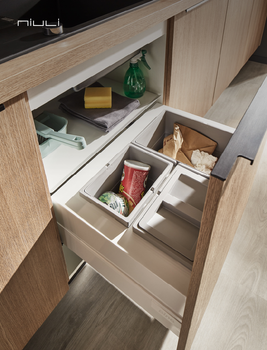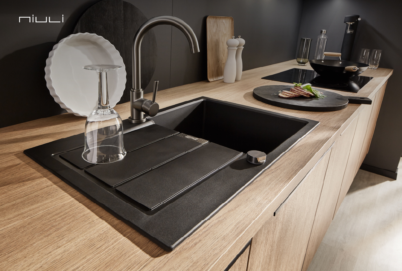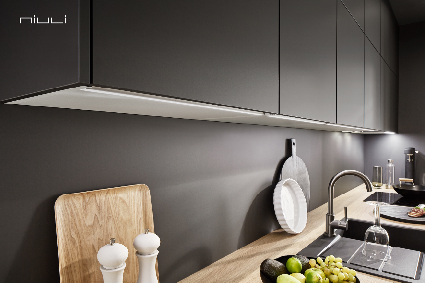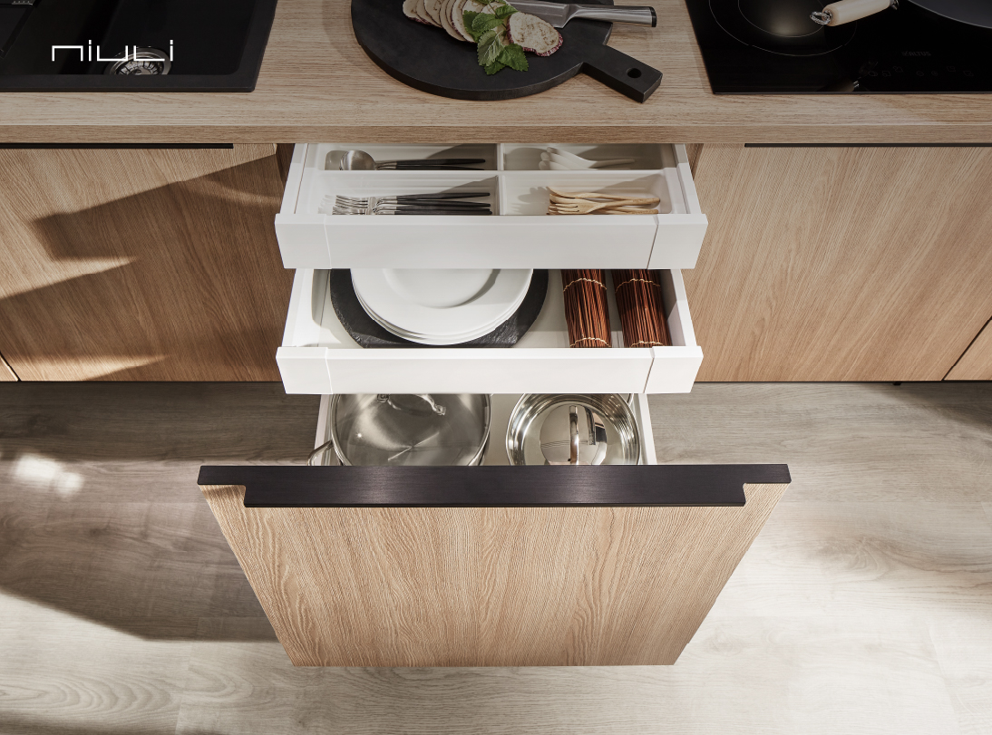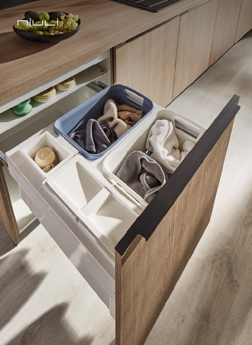 Modern, linear and cleverly designed, this kitchen is the stylish answer to tidiness. With a hint of luxury, it is wonderful for discerning individuals who love having everything in its place. This smart, sophisticated ambiance is perfect for winding down after a long day at work.